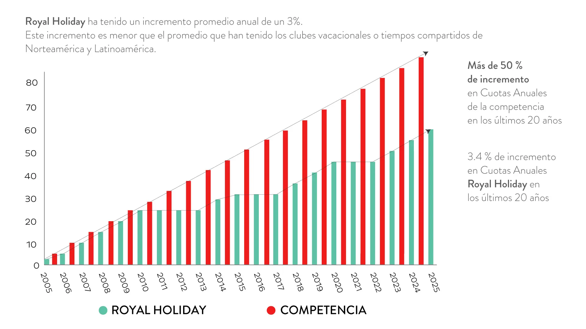 Gráfica incremento de cuotas Royal Holiday vs competencia